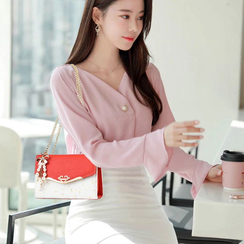 This stylish flap bag is perfect for women who like to make a statement. It features sequin accents and is made of high-quality PU leather.