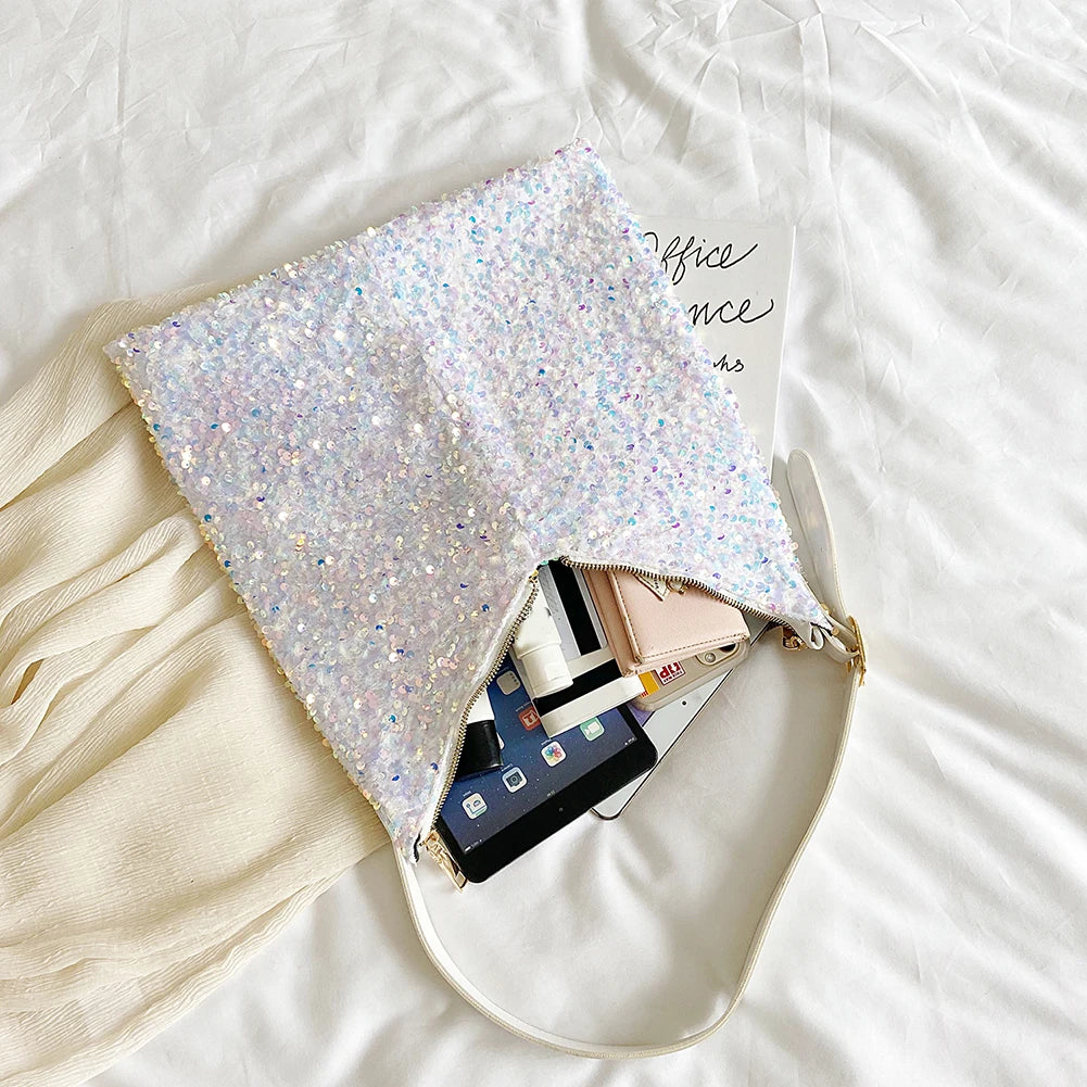Sequin Shoulder Tote Glitter Bag with Leather Straps