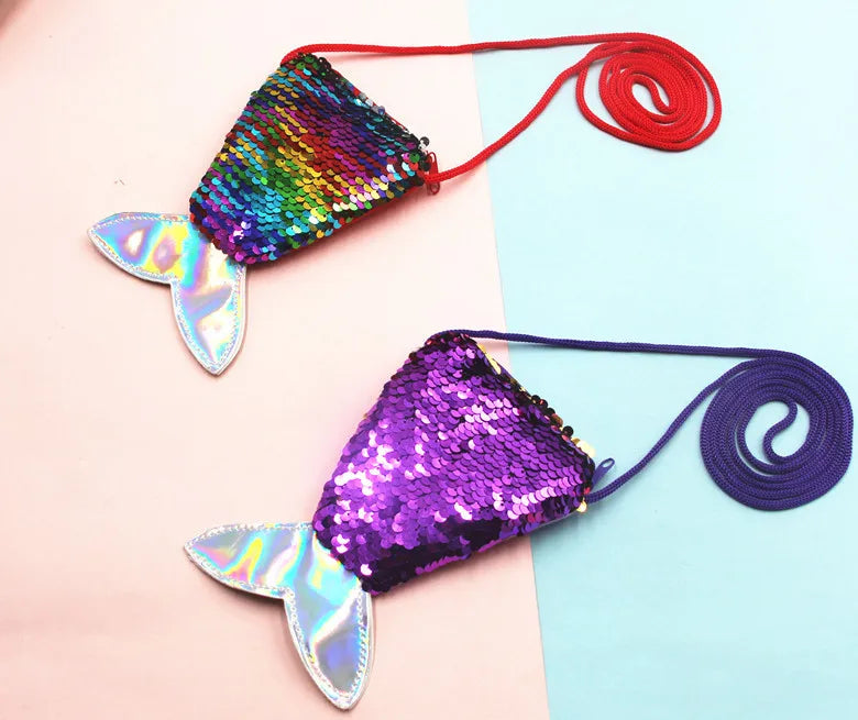 Sequins Mermaid Tail Coin Purse Crossbody Bag for Kids