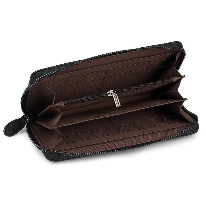 This leather men's wallet features a long design for added storage and style. Made from high-quality sheepskin, it offers a large capacity to hold all your essentials. Ideal for both men and women.