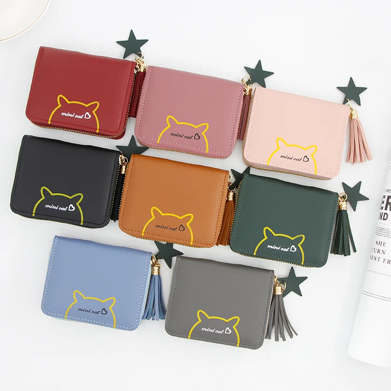 Compact and stylish women's wallet made of PU leather featuring a tassel hasp design. Perfect for holding coins, cards, and cash securely.