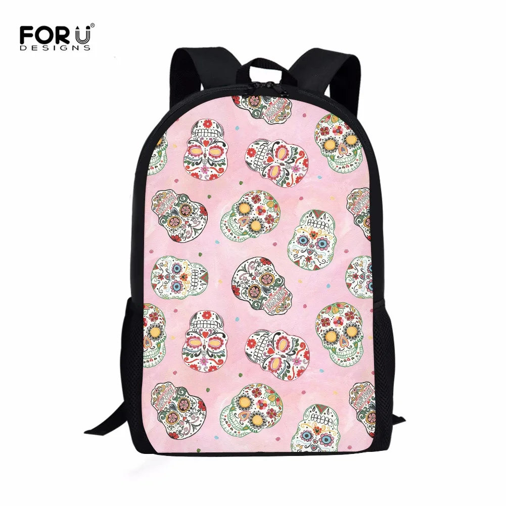 Skull Sugar Pattern Laptop Backpack Pink School Bags School Girl