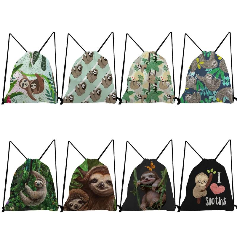 Adorable sloth print drawstring backpack perfect for students. Ideal for school, travel, or everyday use.