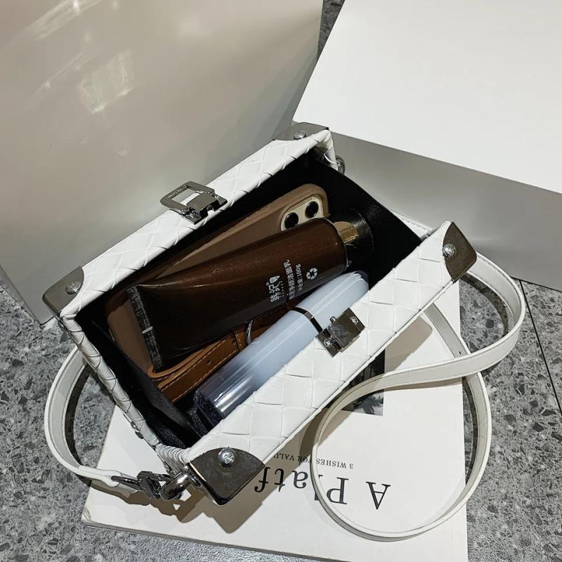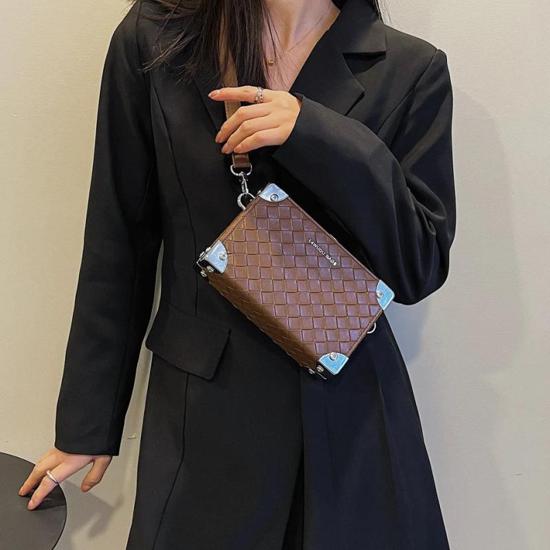 This high-quality crossbody bag is designed for women with a unique woven box pattern. It is perfect for carrying your essentials in style.