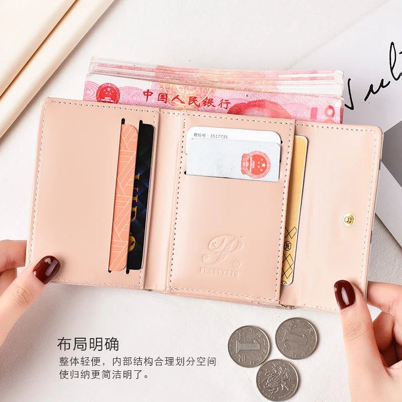 Small Floral Print Women's Wallet, Short Version, Three Fold Buckle