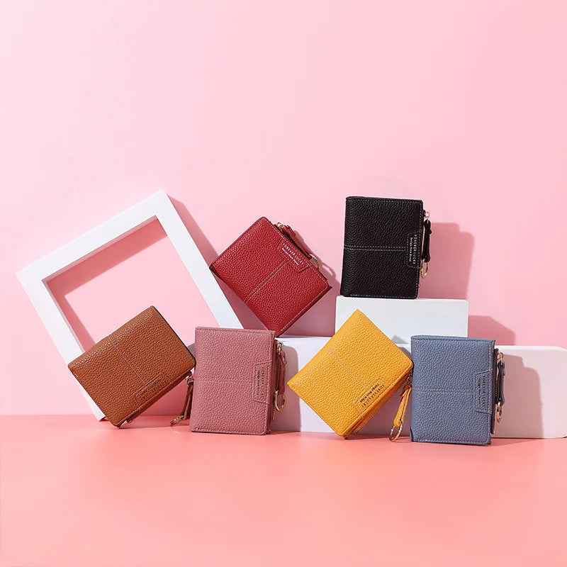 This small ladies wallet is perfect for women looking for a compact and stylish option to store their essentials. It features a hasp closure and is designed as a mini clutch for girls.