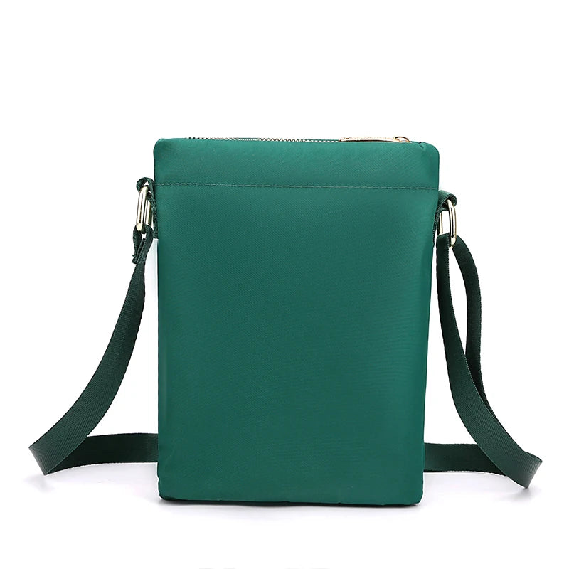 This compact nylon crossbody bag is perfect for carrying your essentials on the go. It can fit your mobile phone, wallet, and other small items. Ideal for travel or everyday use.