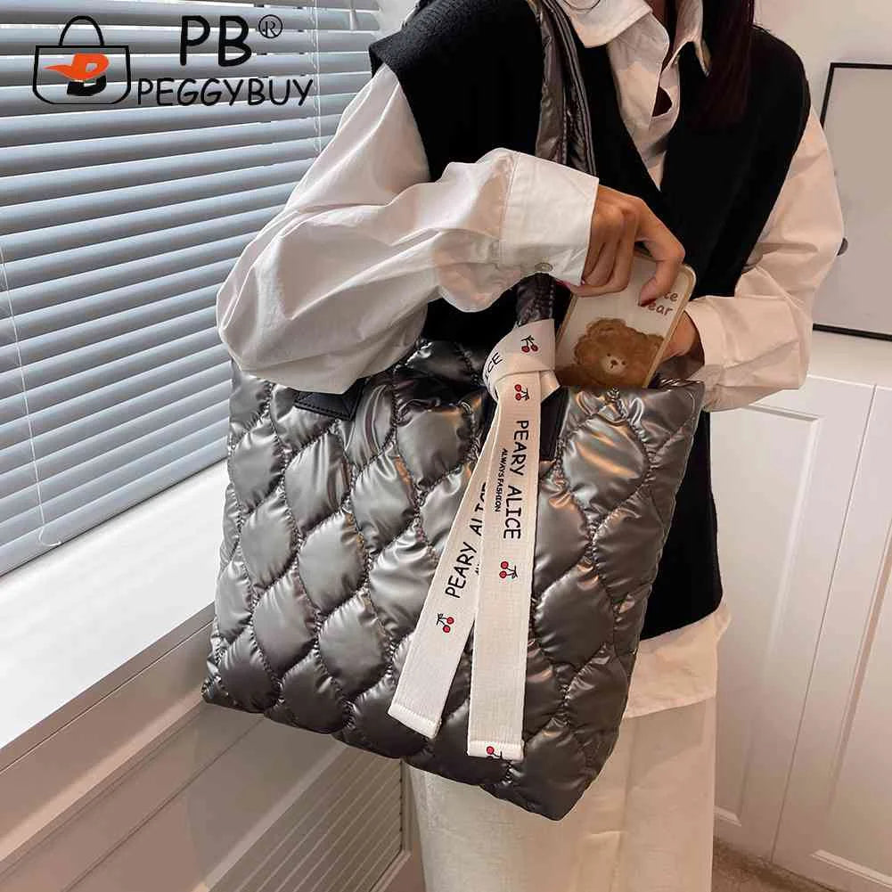 This casual tote bag is made of soft cotton and features a padded design for added comfort. It has a zipper closure and a stylish ribbon handle.