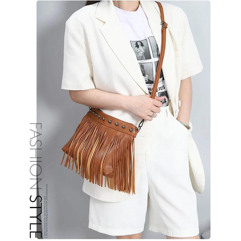 Soft PU Leather Shoulder Bag Women Rivet Tassel Messenger Bag