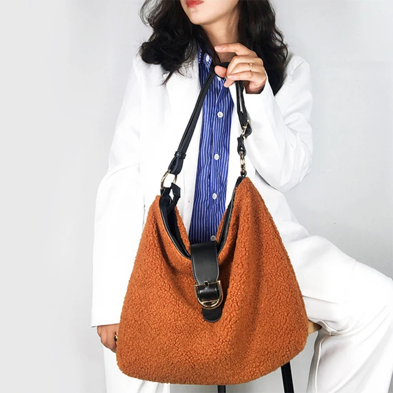 Stay stylish and cozy with this winter-themed shoulder bag made of soft wool plush. Featuring a large capacity, this bag is perfect for carrying all your essentials.