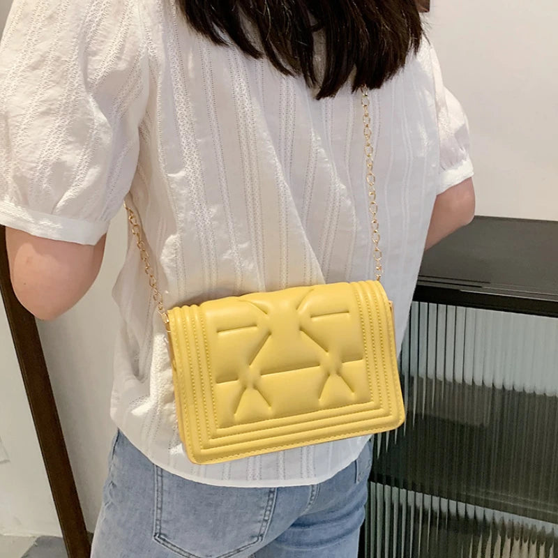This solid bag is perfect for women looking for a stylish and versatile accessory. The chain shoulder strap adds a trendy touch to this all-match piece.