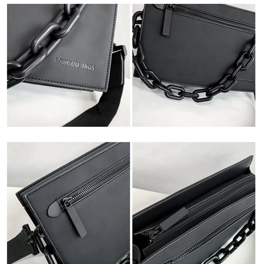 Solid Chest Shoulder Bags PU Leather Chain Waist Bags Horizontal Square Bags