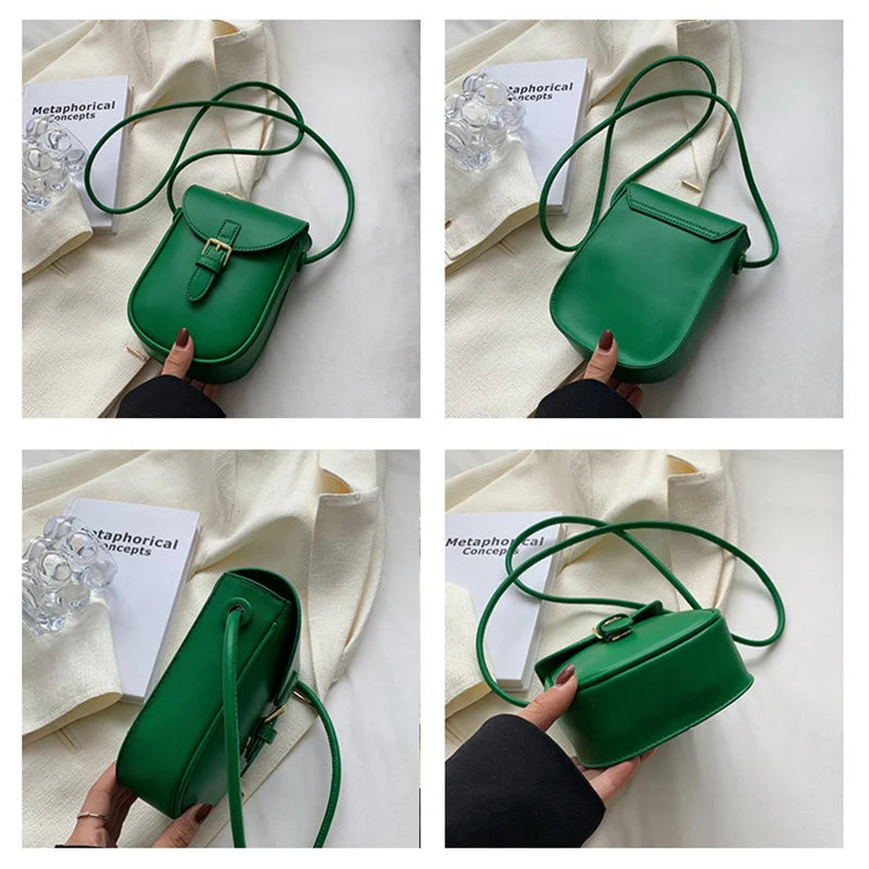 This women's shoulder bag is crafted from high-quality leather, making it durable and stylish. It features a compact design suitable for holding essentials like cell phones and small accessories.