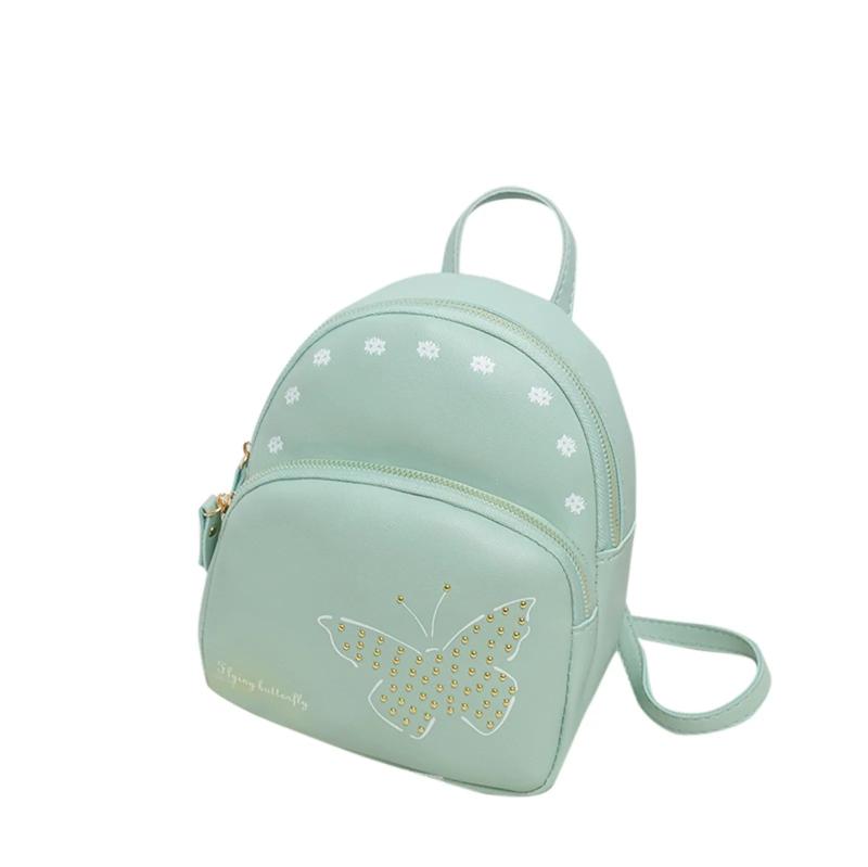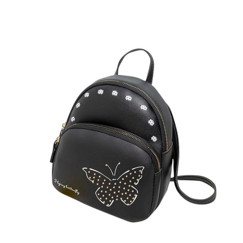 This solid mini backpack is perfect for everyday use. It features a butterfly print design and is suitable for women and girls of all ages.