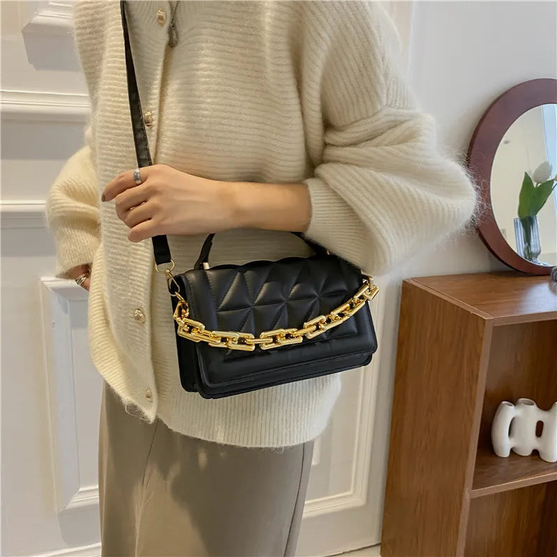 Solid Retro Chain Underarm Bag Rhombic Embroidery Thread Crossbody Bag