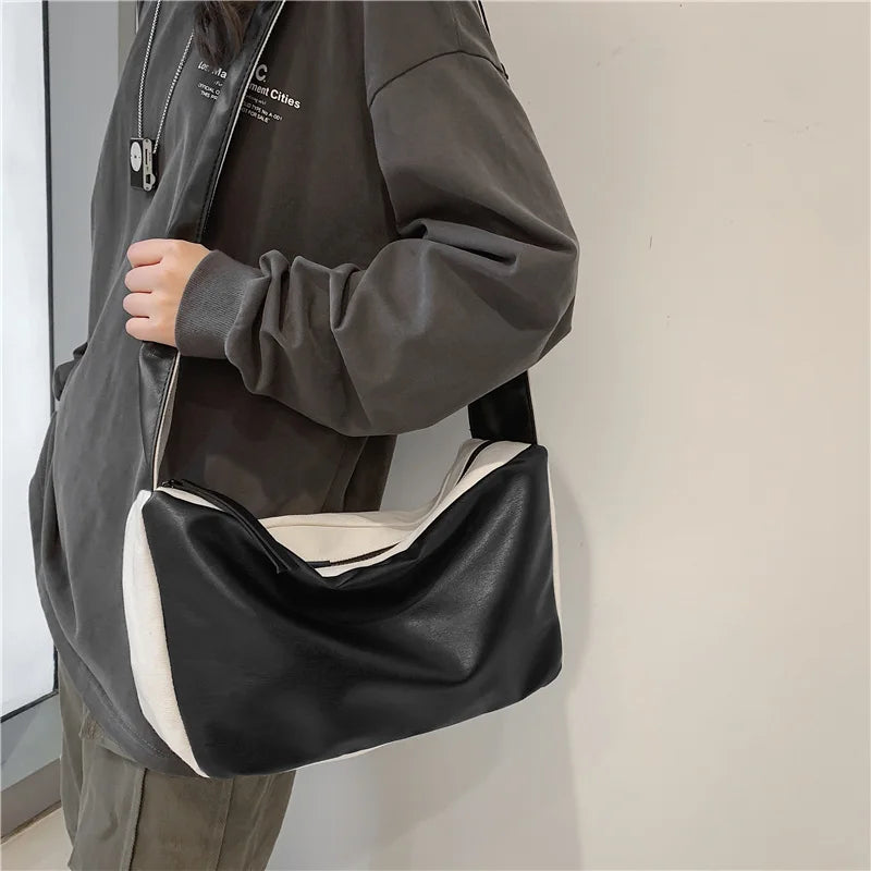 This high-quality shoulder bag is perfect for women on the go. It features a panelled design, large capacity, and is made of durable leather. Keep your essentials organized in style.