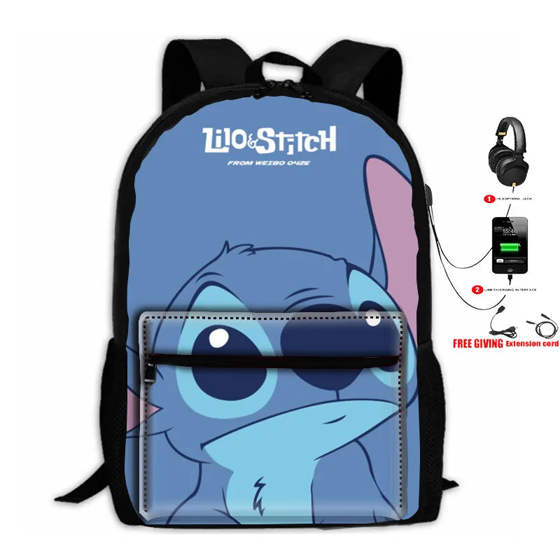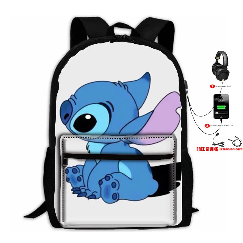 Stitch USB Charging Backpack LaptopTravel Backpack For Girls Women