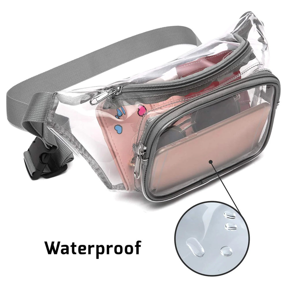 Stitching Clear Waist Bag, Double-Layer Zippers Waterproof Pack