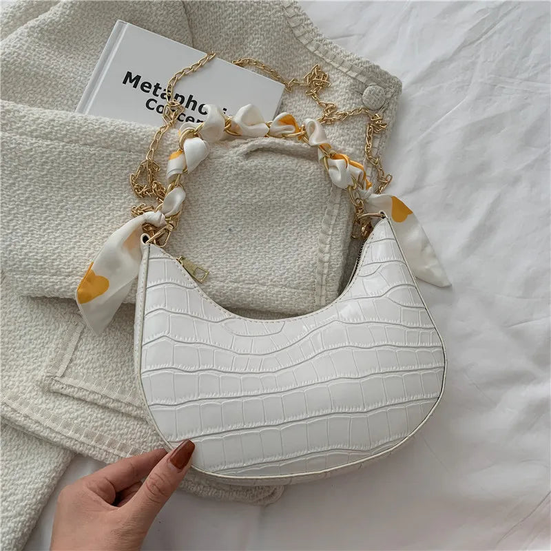 Description:Get stylish with this crescent-shaped shoulder bag featuring a stone pattern and chain strap. Perfect for everyday use or special occasions.Features: Stone pattern design with chain strap Crescent shape adds a unique touch Perfect for everyday use or special occasions Portable and convenient to carry around Available in 9 trendy...