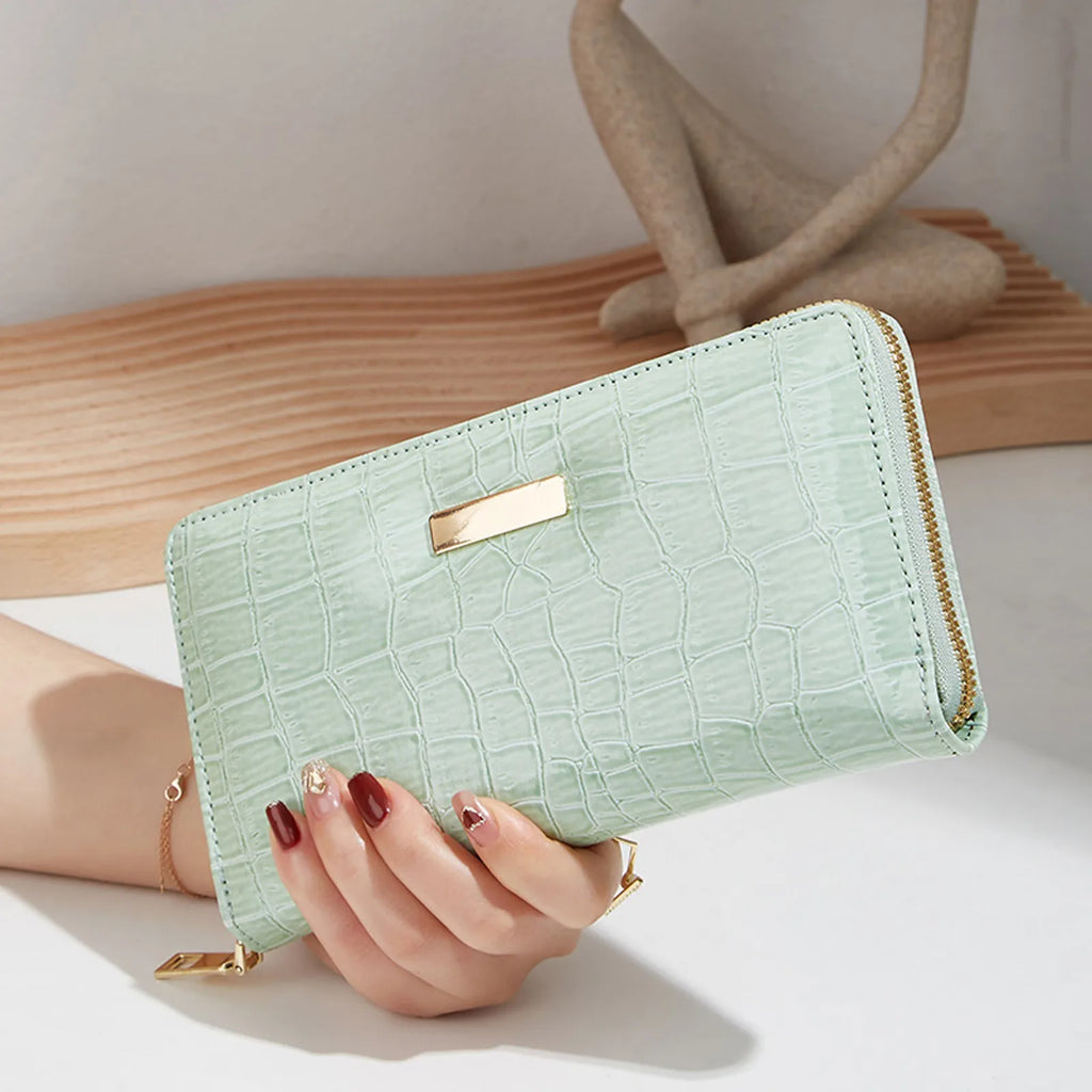 Stone Pattern Long Wallet Solid Women Zipper Purse Card Clutch Bag