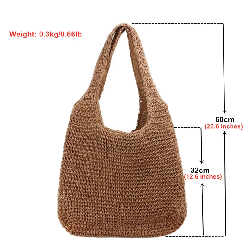 Carry your essentials in style with this casual large-capacity straw beach bag designed for women. The hobo style offers a fashionable and relaxed look, perfect for a day at the beach or a casual outing.
