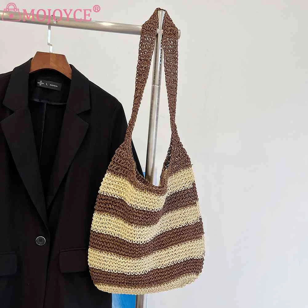 This straw weave shoulder bag is perfect for your summer beach vacation. It features a hollow striped design and a soft square shape. With a large capacity, it's ideal for carrying your essentials in style.