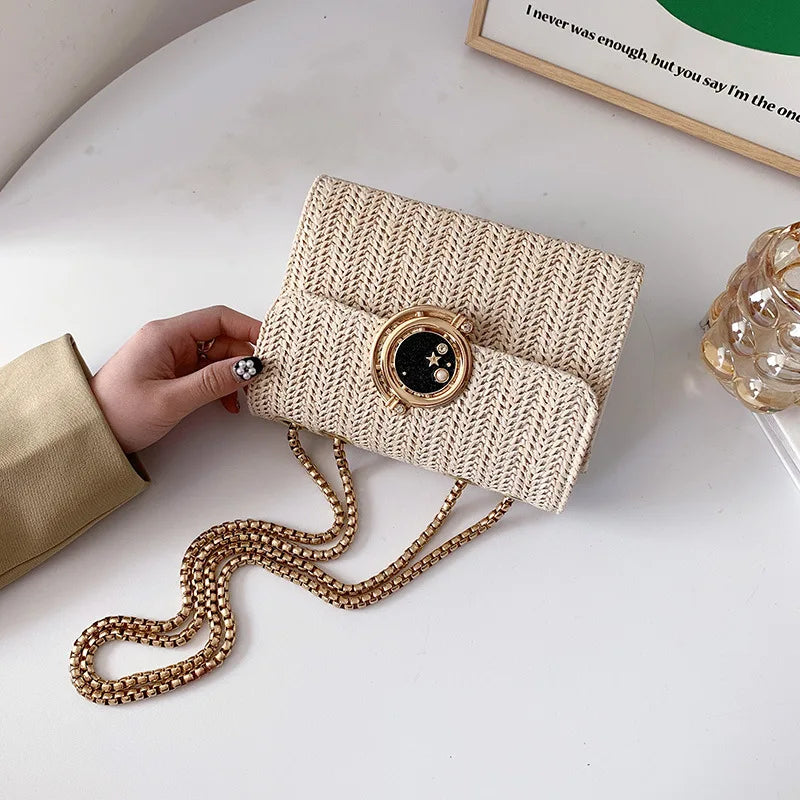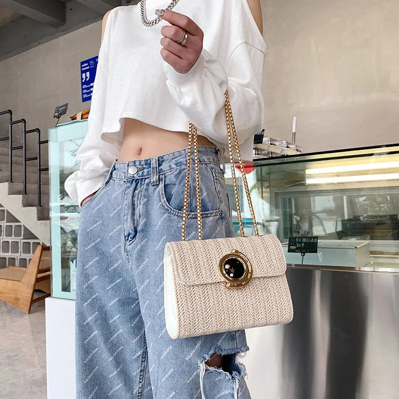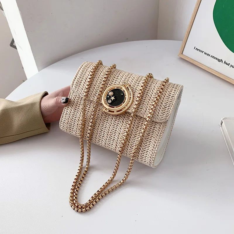 Straw Woven Shoulder Bag Leisure Holiday Diagonal Crossbody Bag