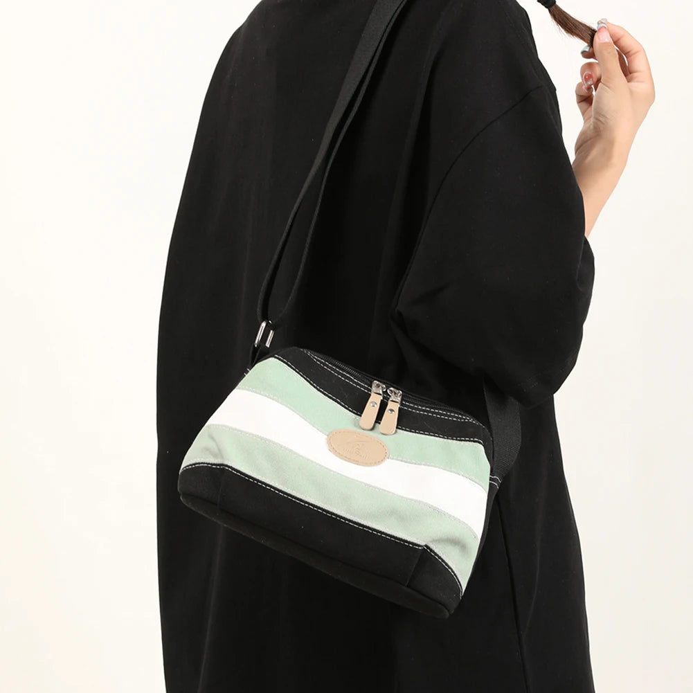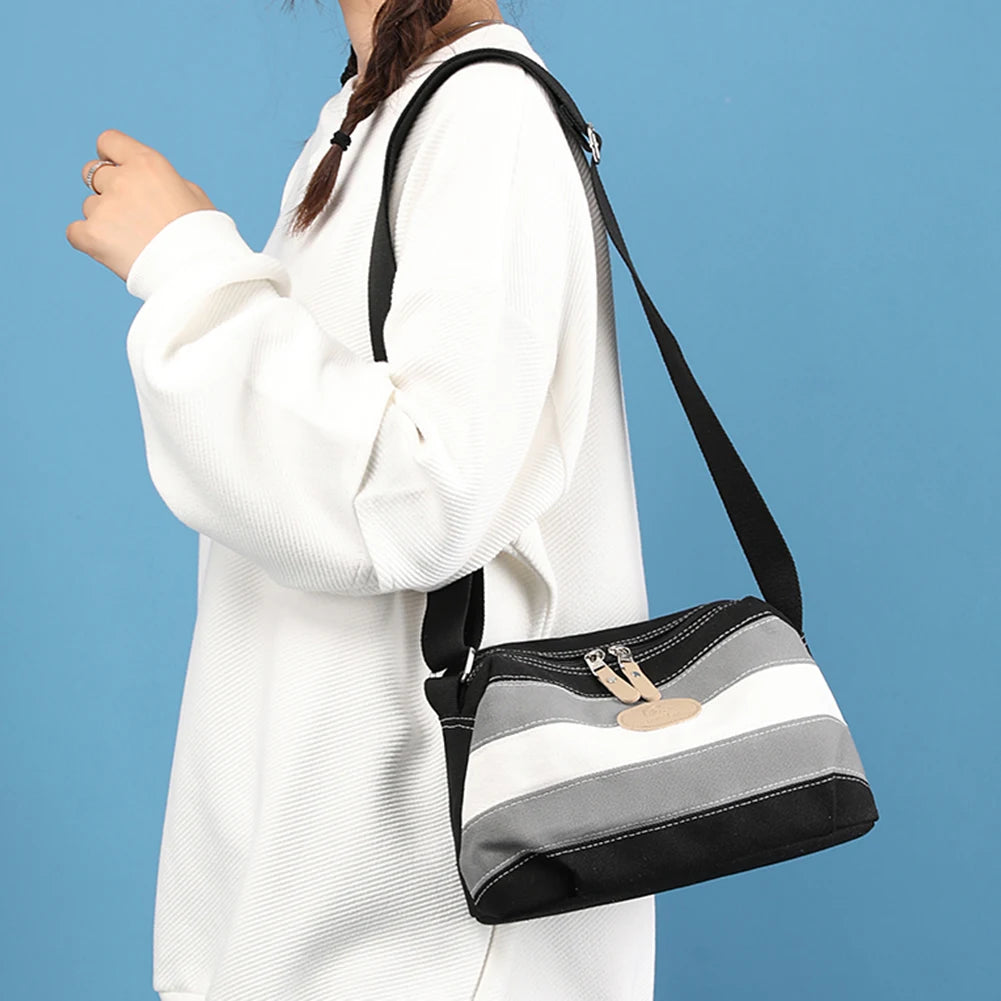 Strip Contrast Shoulder Bag Crossbody Large Capacity Canvas Messenger Bag