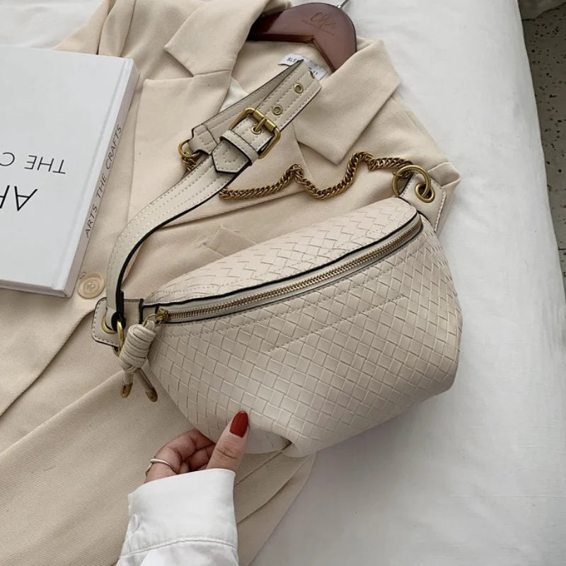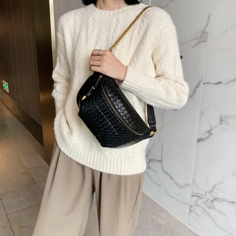 Stylish Braid PU Leather Fanny Pack Chain Crossbody Chest Bag