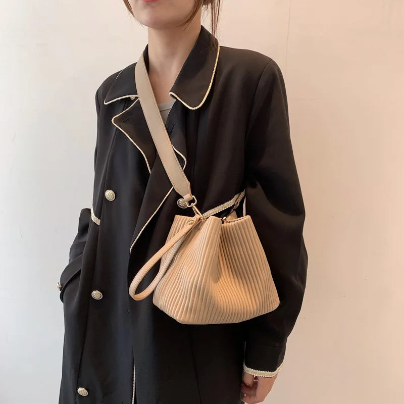 Summer Fold Texture Messenger Bag Large Capacity Bucket Bag