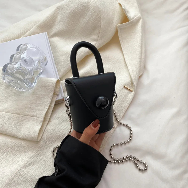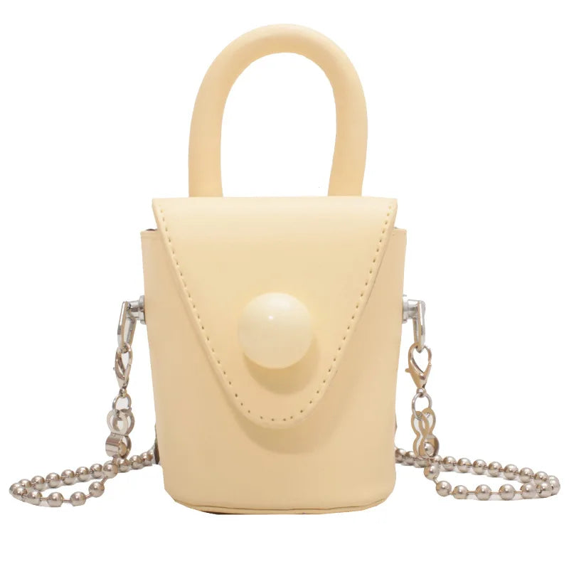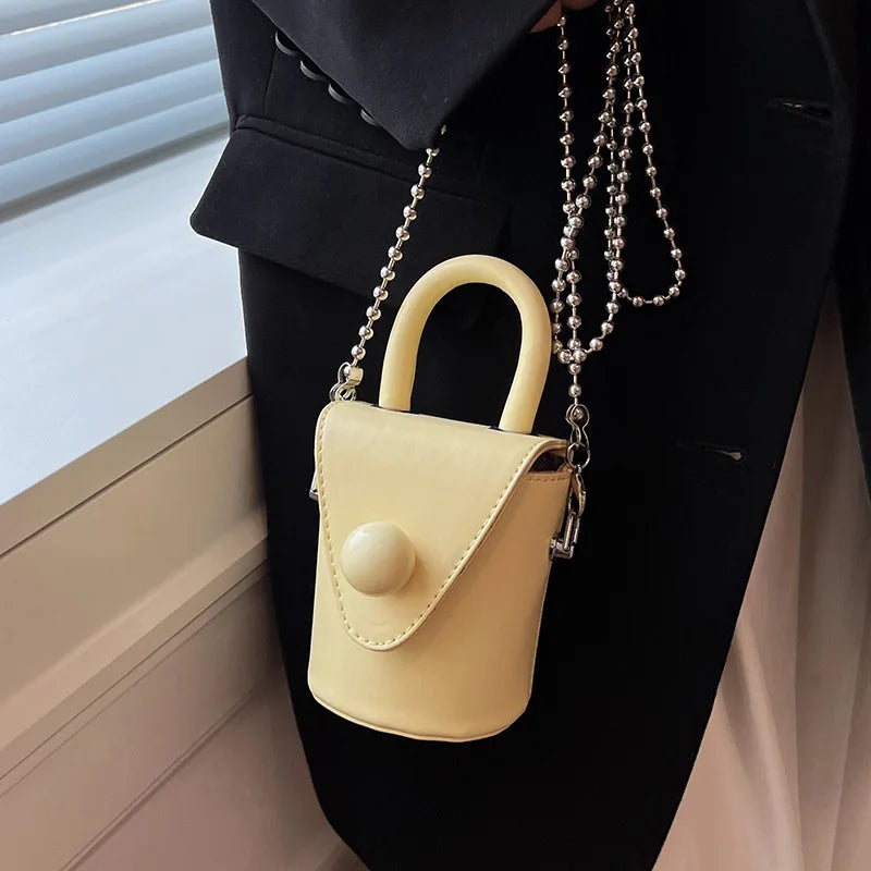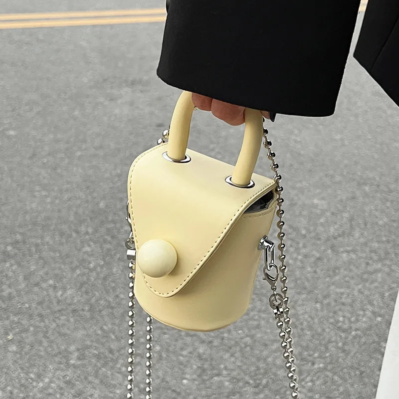 This stylish and versatile bag is perfect for summer outings. The portable bucket design and chain details add a trendy touch.