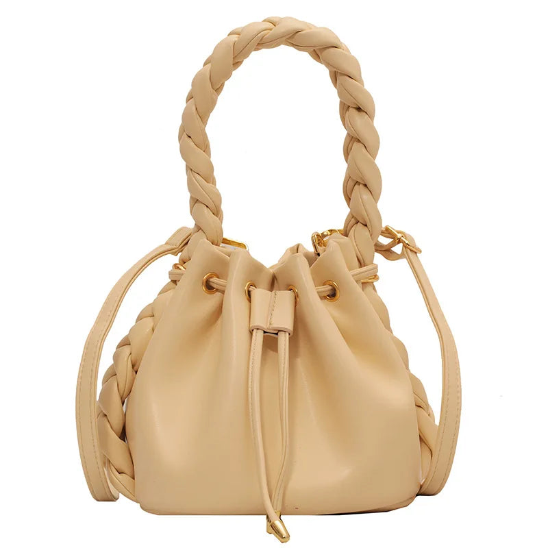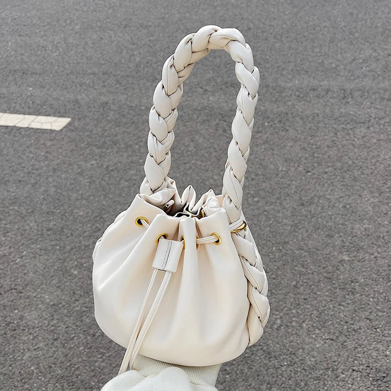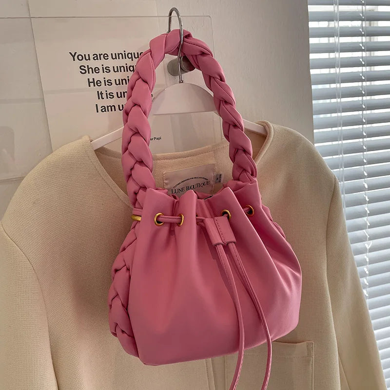 Summer Ladies Messenger Bag High Drawstring Portable Pleated Bucket Bag