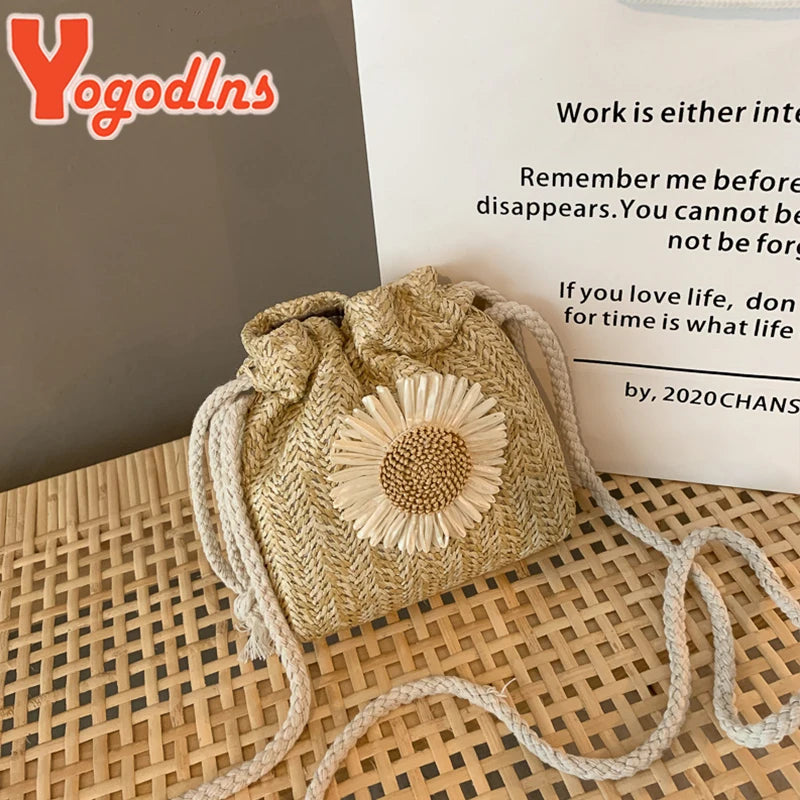Summer Straw Bucket Bag For Women Knitted Beach Bag Bohemia Small Crossbody Bag