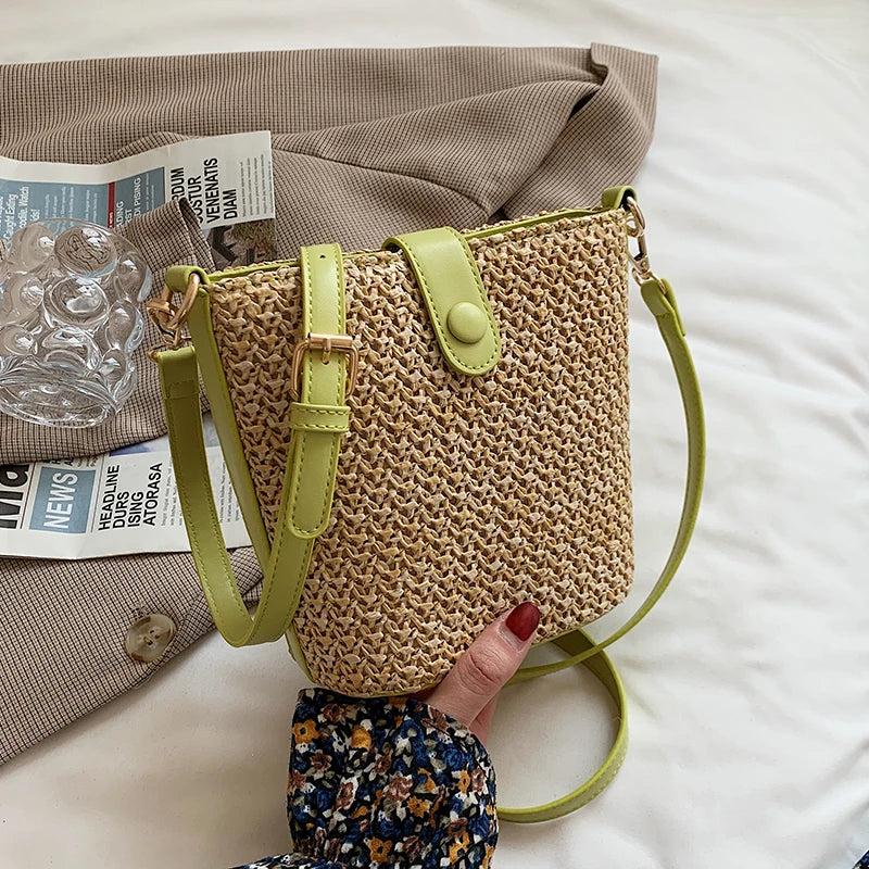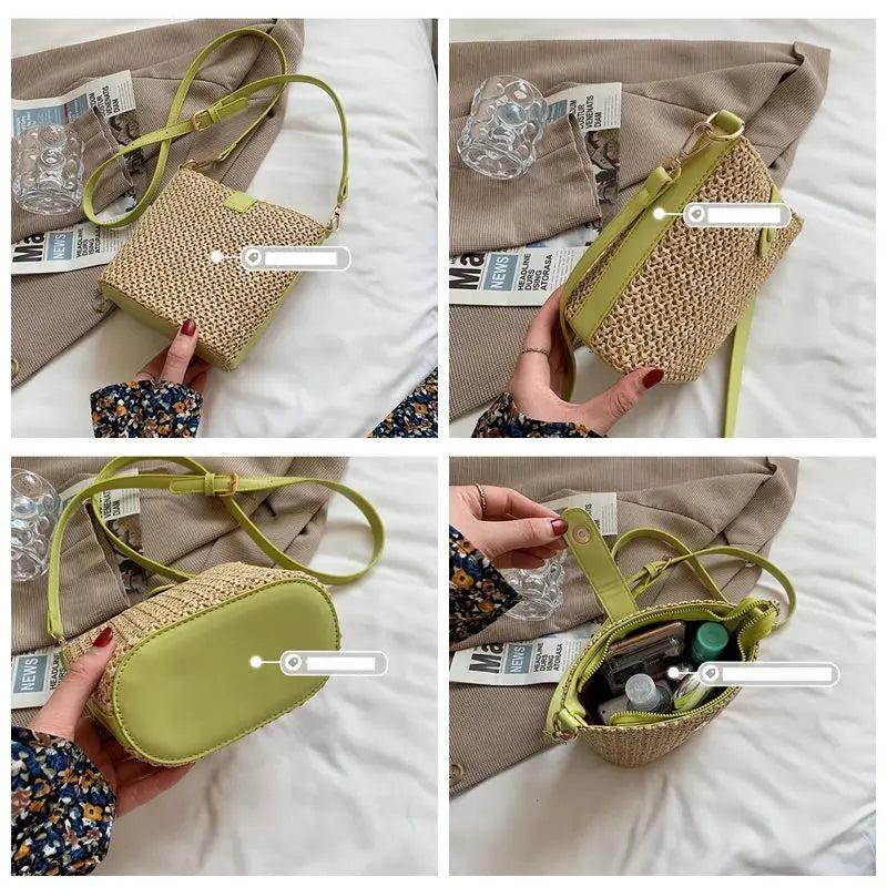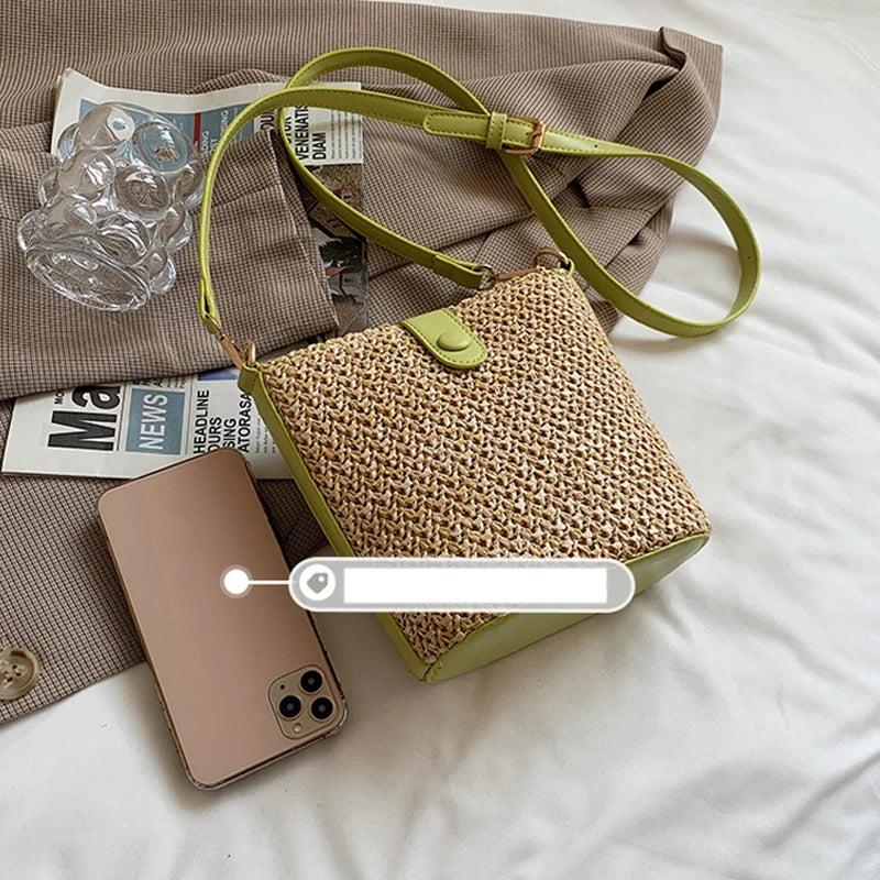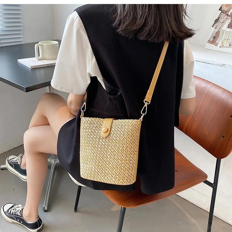 Summer Straw Woven Bucket Crossbody Bag for Women