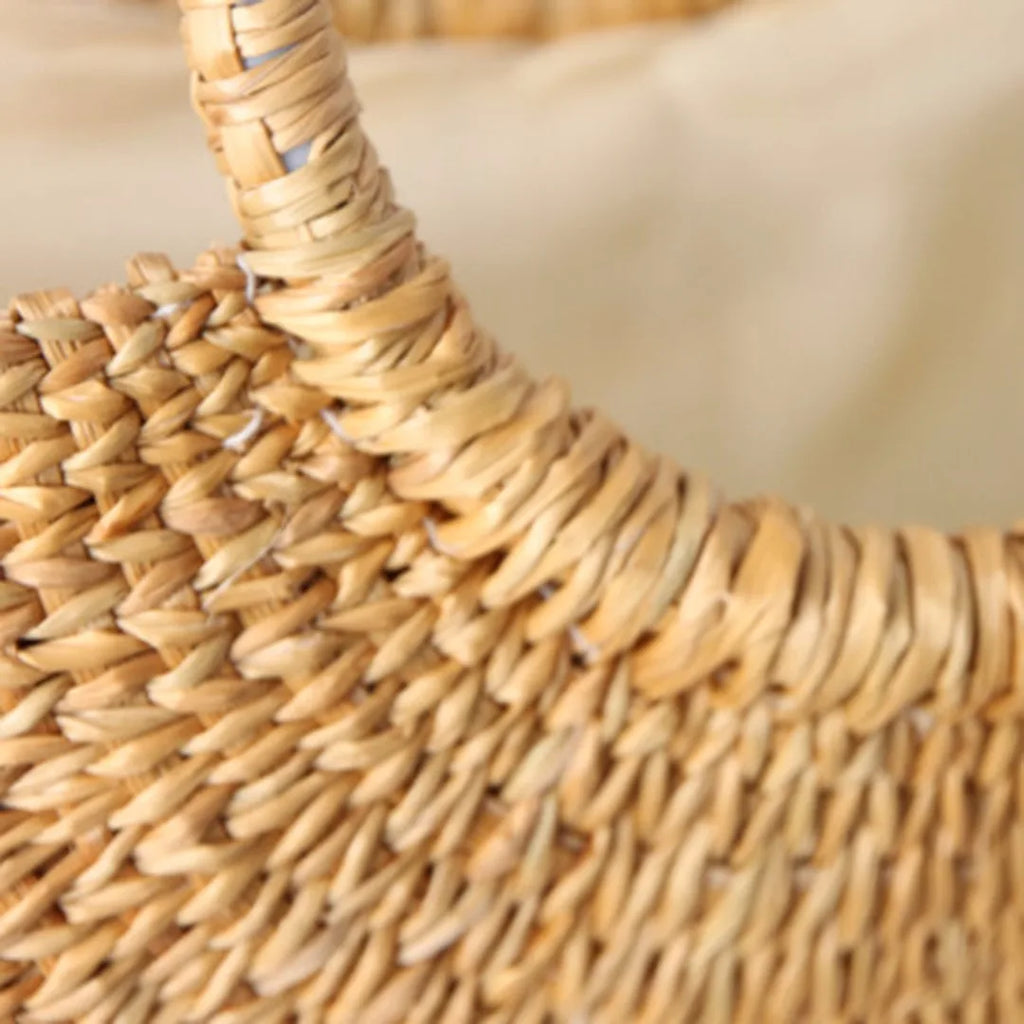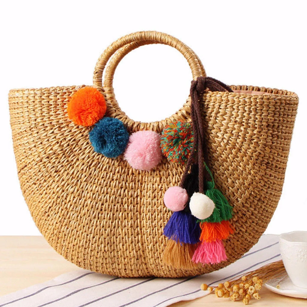 Summer Women Pom Pom Tassel Straw Beach Tote Bag