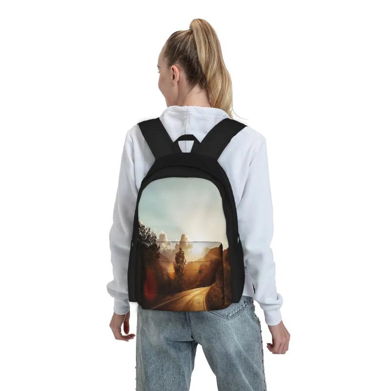 Stylish and functional backpack featuring a sunset road design, perfect for men, women, and kids.