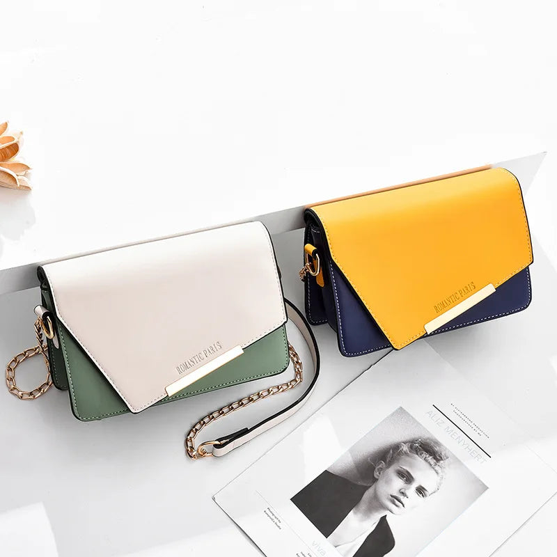 Sweet Casual Contrast Messenger Bag Women Chain All-match Small Square Bag