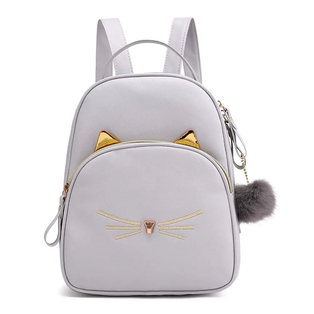 Teenager Girls Casual PU Leather School Bags Women Cartoon Cat Printed