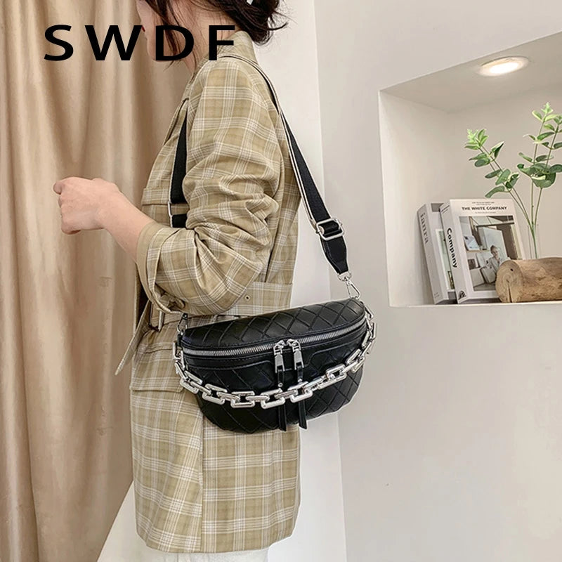 Thick Chain Leather Waist Bag Women Fanny Pack Female Chest Bags