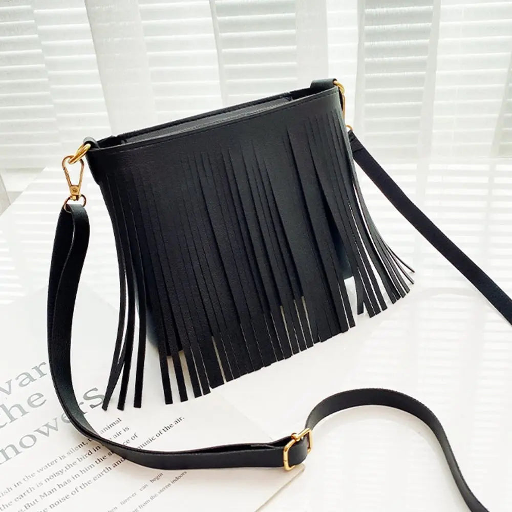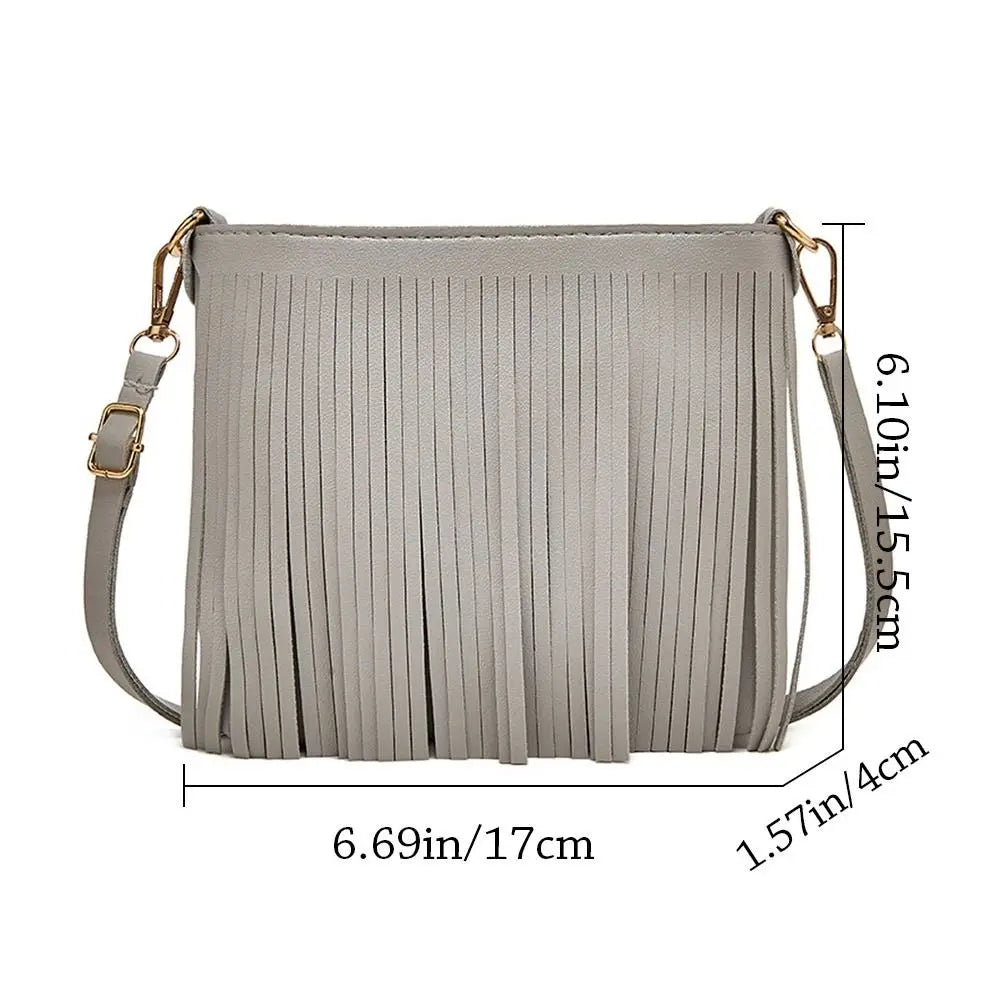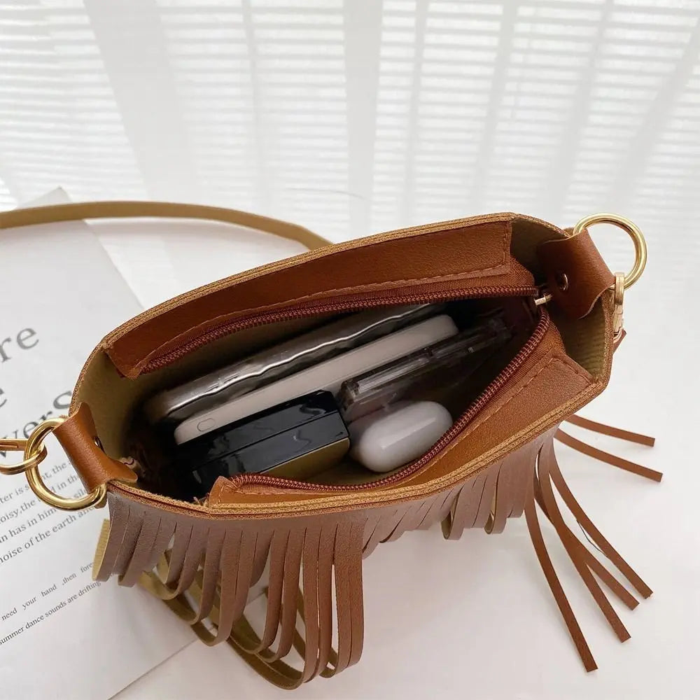 This stylish shoulder bag features a thick tassel design, perfect for carrying your essentials on the go. Made of high-quality leather, it includes a mini bag and coin purse for added convenience.