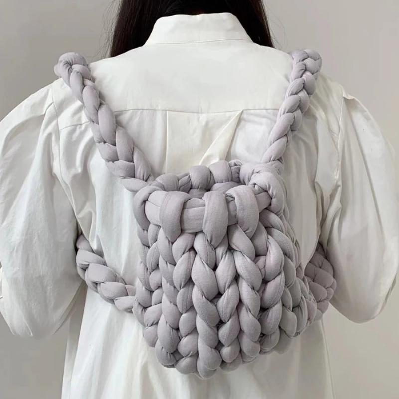 Thick Woolen Backpack for Women Crochet Bag Candy Knitted Shoulder Travel Bag