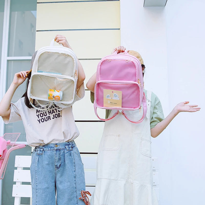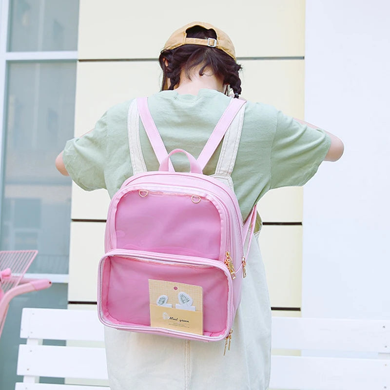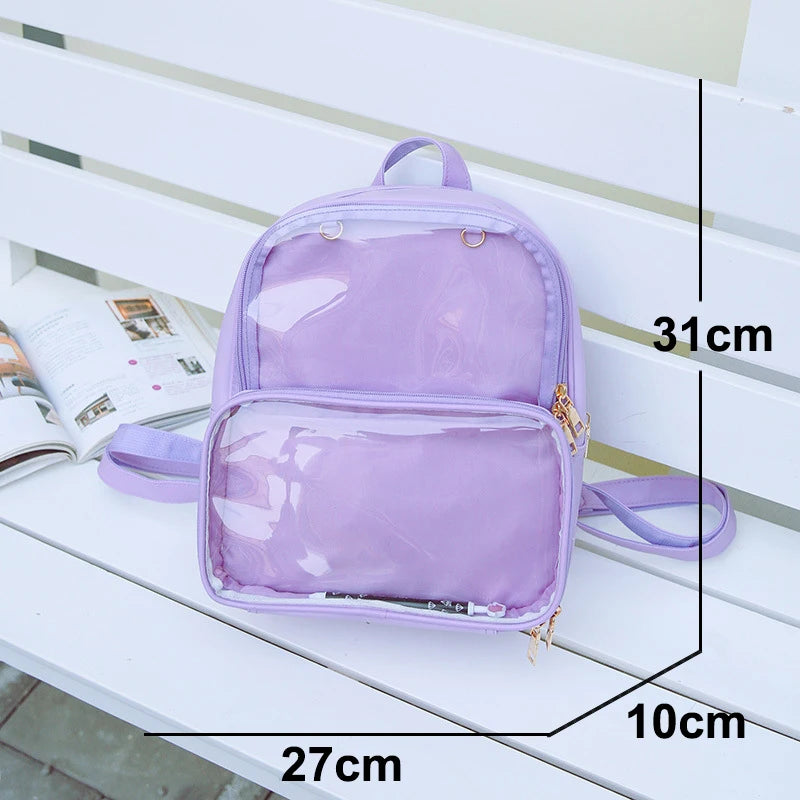 This transparent backpack is perfect for teenage girls. It is made of waterproof PVC jelly material and features a stylish design. Ideal for school and everyday use.