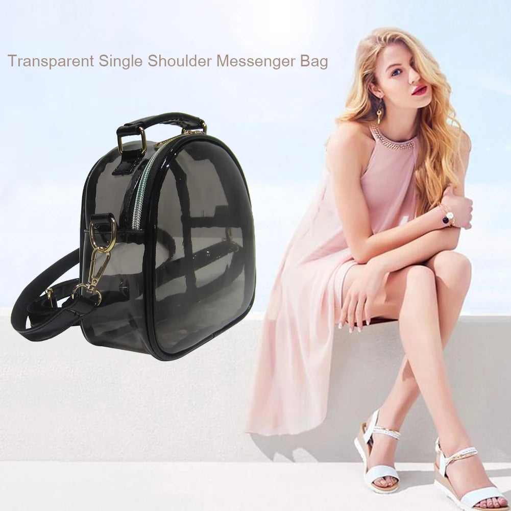 Stay stylish and organized with this laser transparent PVC crossbody bag that is perfect for women. The mini jelly clear design adds a trendy touch to your outfit.