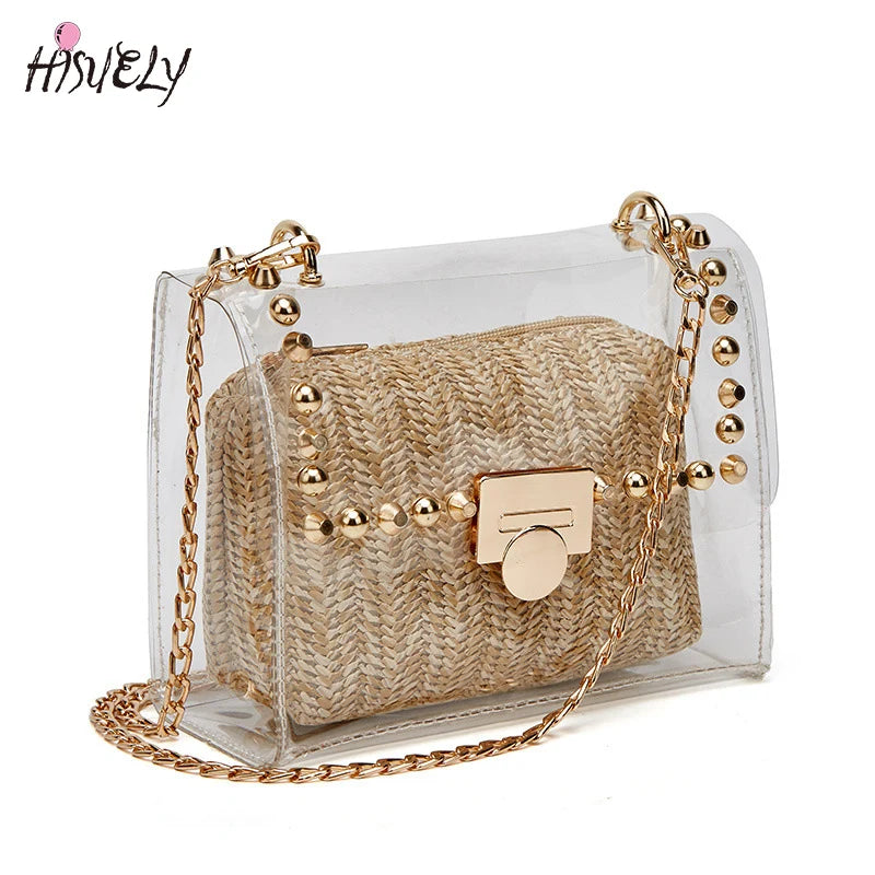 Transparent Women Shoulder Bag PVC Messenger Beach Straw Woven Wallet