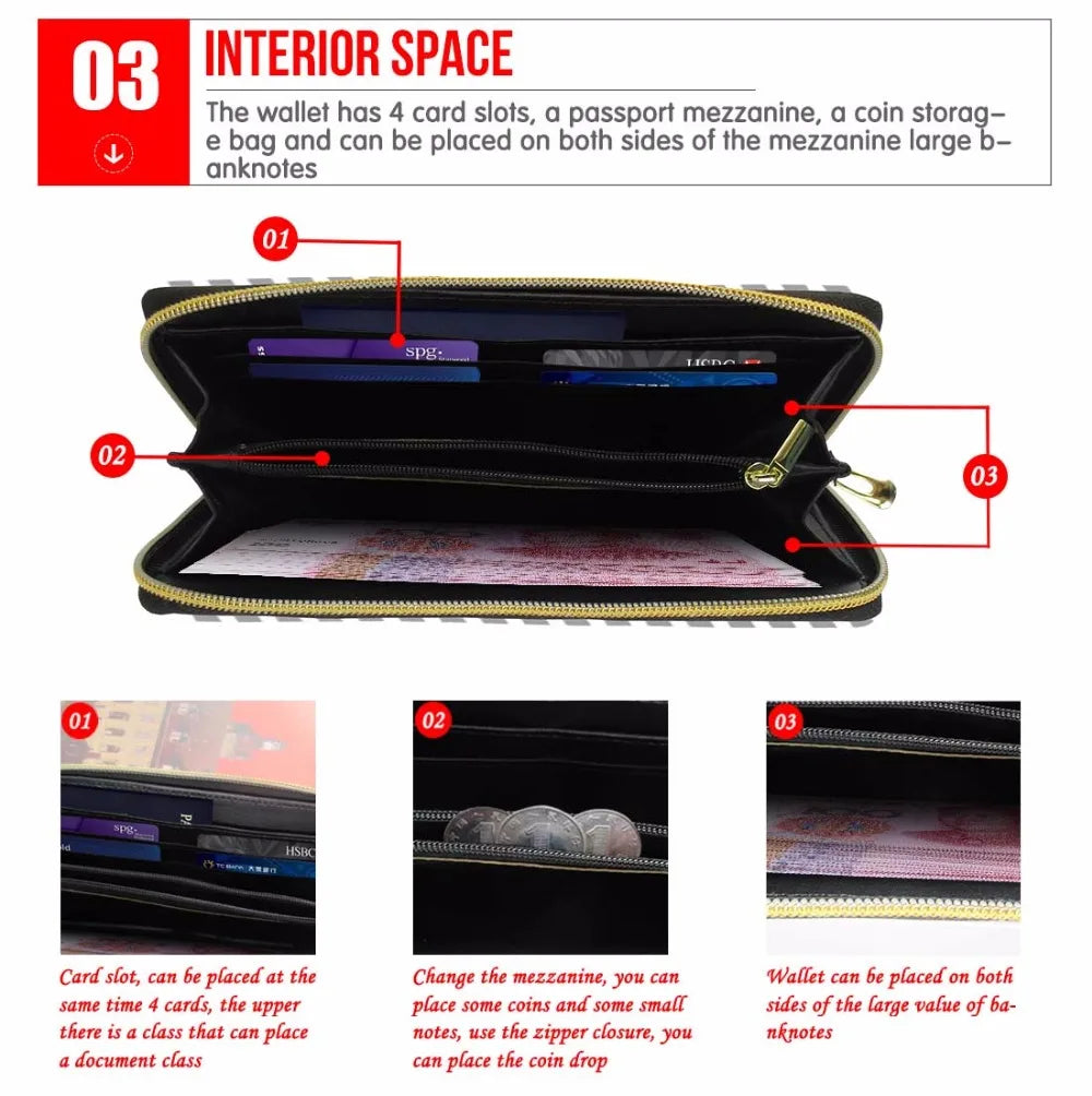 Stay organized in style with this tribal flower print leather wallet. It features a long zipper, multiple slots for cards and cash, and a coin purse pouch. Perfect for keeping your money and essentials secure.