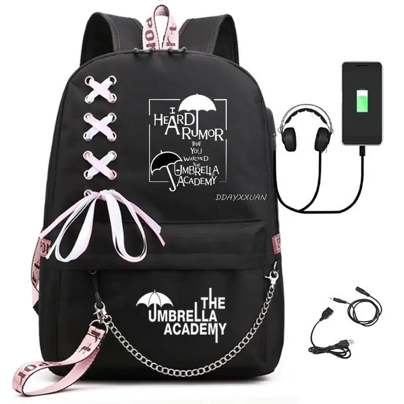 Umbrella Academy USB Backpack Laptop Rucksack School Bag