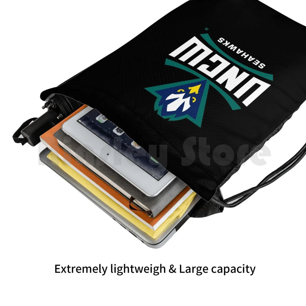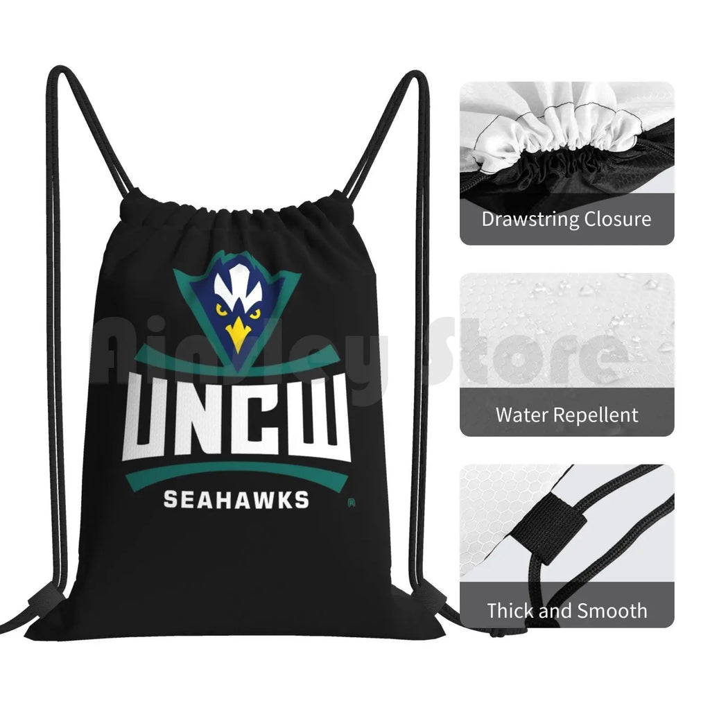 This drawstring bag is perfect for various sports activities such as riding, climbing, gym, baseball, football, and softball. It features the UNCW Seahawks logo for a stylish look.