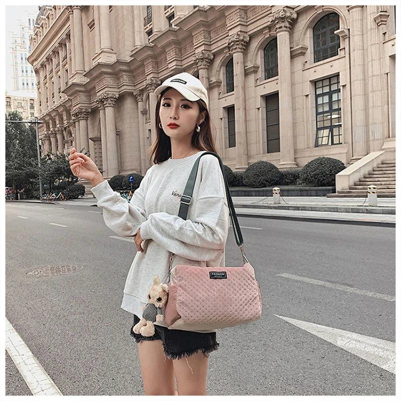 Velvet Gym Bag for Women Large Capacity Crossbody Travel Bag