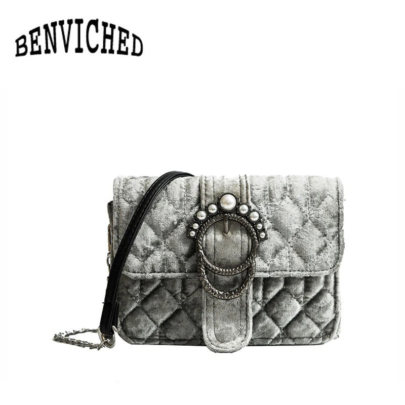 Elegant and versatile, this velvet shoulder bag is perfect for any occasion. The pearl detailing adds a touch of sophistication.