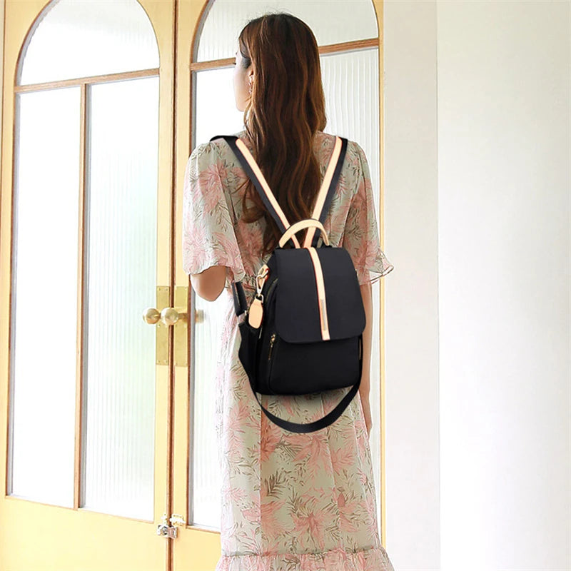 Stay stylish and organized with this waterproof Oxford cloth backpack specifically designed for women. Perfect for everyday use or travel.